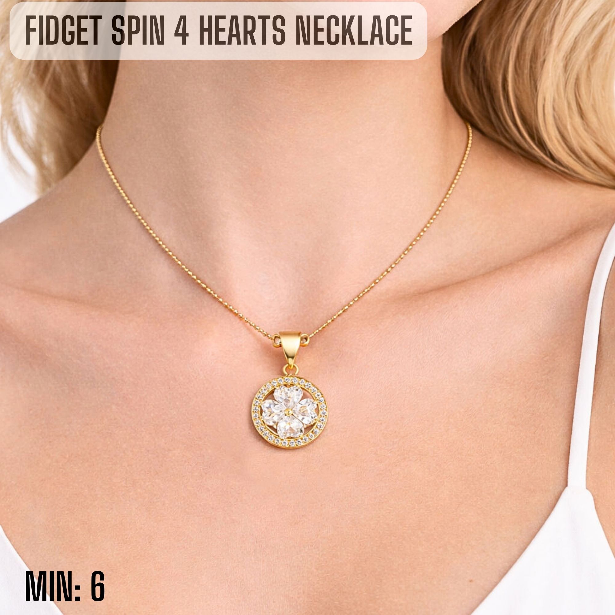 MI-FIDGETNECKLACE11 - Fidget Spin 4 Hearts Necklace